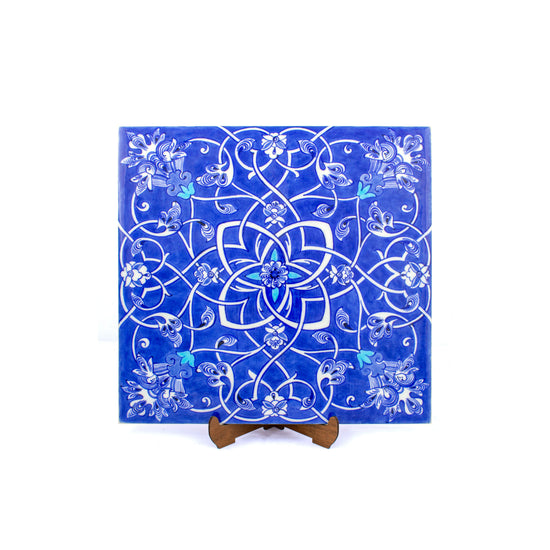 Iznik tiles are delivered in a velvet box along with a wooden or plexiglass stand, while Iznik ceramics are presented in a velvet box.