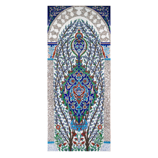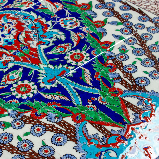 This Iznik tile & ceramic, like tiles produced during the Ottoman period, contains a high percentage of quartz and is entirely handcrafted. A glossy glaze is applied to the final layer.
