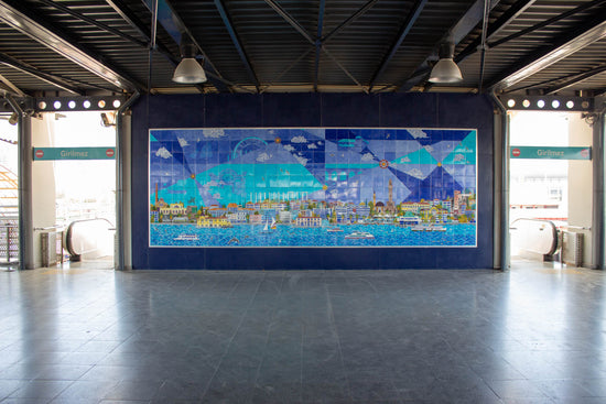 Designed by Nasuhi Hasan Colpan and produced by our company, this 2.5 x 7-meter miniature tile panel illustrates Izmir’s landmarks with the elegant touch of Iznik artistry. Displayed at Halkapinar Metro Station, it enriches the city’s cultural and artistic identity.