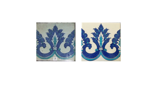 In the 2020 restoration, Iznik Mavi Cini produced 850 Iznik tiles in various sizes (25x25 cm, 12x25 cm, and 9x25 cm) for the interior ornamentation, replicating the original craftsmanship.