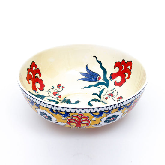 Red Lily and Blue Tulip Iznik Tile Bowl - Yellow Background