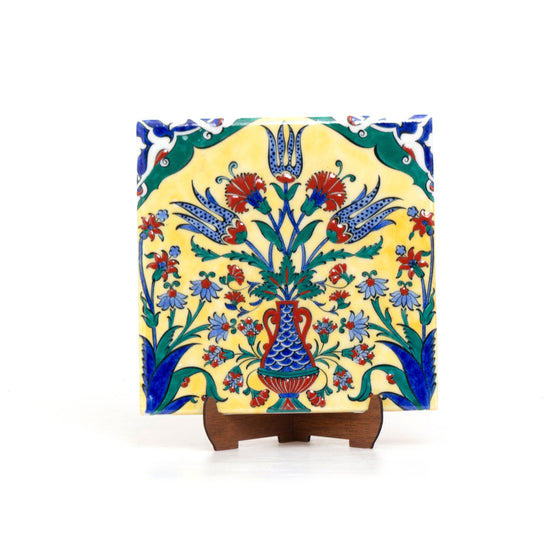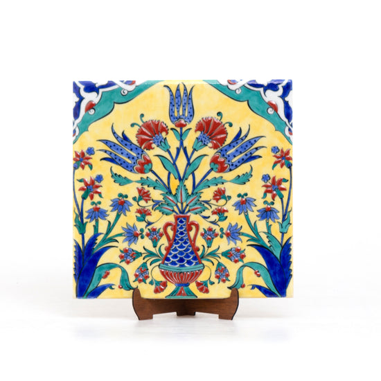 Three Tulip Patterned Iznik Tile - Yellow Background
