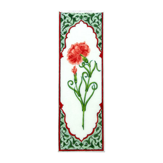 Karanfil, Osmanlı çini sanatında sevgi, sadakat ve zarafetin simgesidir. Ali Üsküdarî’nin natüralist yaklaşımıyla tasarlanan bu pano, bitkisel formların dengeli uyumuyla saray bahçelerini anımsatır. Kemerli çerçeve, eserin mimari kompozisyonunu tamamlar. Her bir İznik çinisi, usta zanaatkarlar tarafından tamamen el işçiliğiyle üretilmiştir. Bu kompozisyon tasarımı Serap Ereyli ve İznik Mavi Çini'ye aittir.