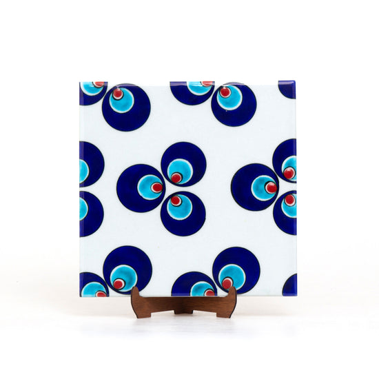 Çintemani, Orta Asya kökenli sembollerle biçimlenen, Osmanlı çini sanatında gücü, kudreti ve göz değmesinden korunmayı temsil eden klasik bir motiftir. Bu tasarım, geleneksel anlamını koruyarak sade bir düzenlemeyle yeniden yorumlanmıştır. Her bir İznik çinisi, usta zanaatkarlar tarafından tamamen el işçiliğiyle üretilmiştir. Düzenleme Serap Ereyli ve İznik Mavi Çini’ye aittir.