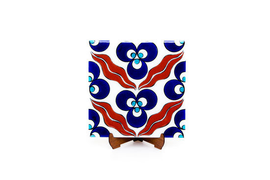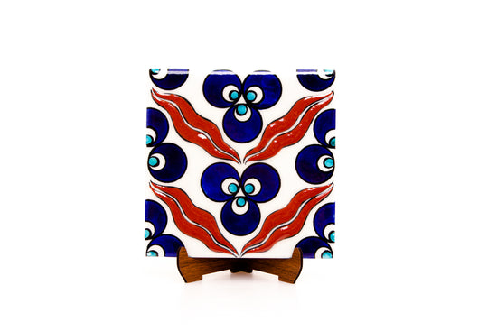 Bu çini karo, güç, kudret ve koruyuculuğu simgeleyen geleneksel Çintemani motifiyle bezenmiştir. Üç benek ve dalgalı çizgilerden oluşan bu sembolik desen, Türk sanatında hükümdarlık alameti olarak kabul edilir. Her bir İznik çinisi, usta zanaatkarlar tarafından tamamen el işçiliğiyle üretilmiştir.