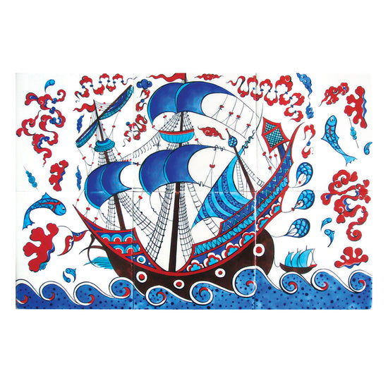 Osmanlı donanmasında yer alan Fevziye Kalyonu, İznik çini sanatıyla ölümsüzleştirildi. El işçiliğiyle hazırlanan bu pano, tarihi ve sanatsal bir dokunuş sunuyor. Her bir İznik çinisi, usta zanaatkarlar tarafından tamamen el işçiliğiyle üretilmiştir. Desen tasarımı Serap Ereyli ve İznik Mavi Çini'ye aittir.