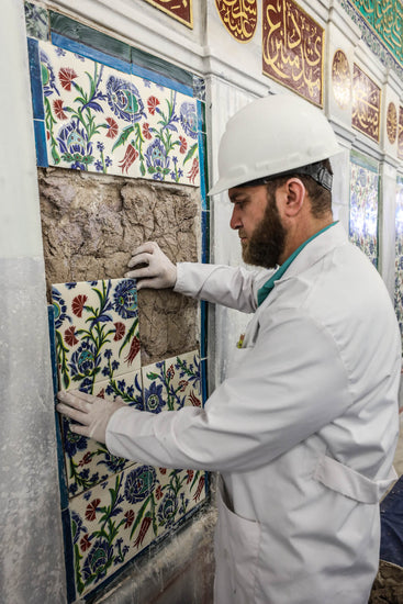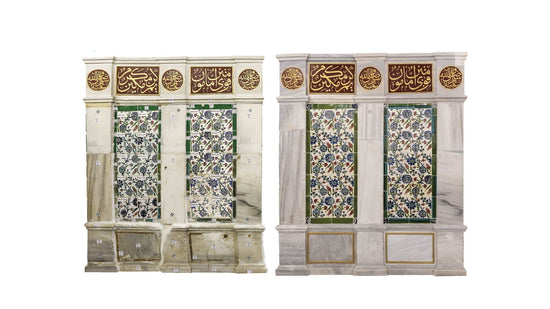 2019 yılının Haziran ayında Mısırlı restorasyon firması ile başlatılan görüşmeler, numune üretimi ve Medine’de yerinde yapılan incelemelerle devam etmiş; çalışmalar, aslına uygun gövde, astar, boya ve sırça üretimiyle tamamlanmıştır. Restorasyon kapsamında, 25x25 cm, 8x25 cm, 10x25 cm ve 12x25 cm ebatlarında toplam 462 parça İznik çinisi, klasik boyama tekniğinden farklı olarak kalem işi çalışmaların sır altı dekor tekniğiyle entegre edilmesiyle firmamız tarafından aslına uygun şekilde üretilmiştir.
