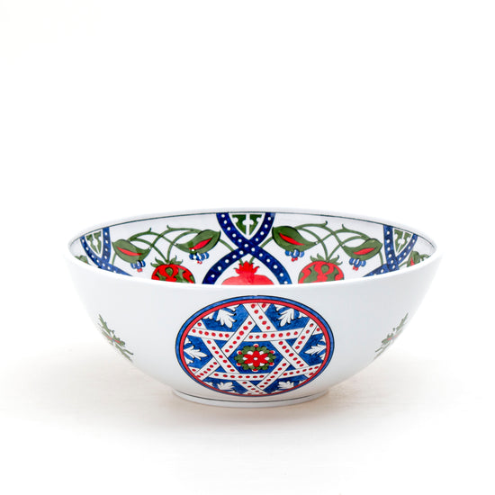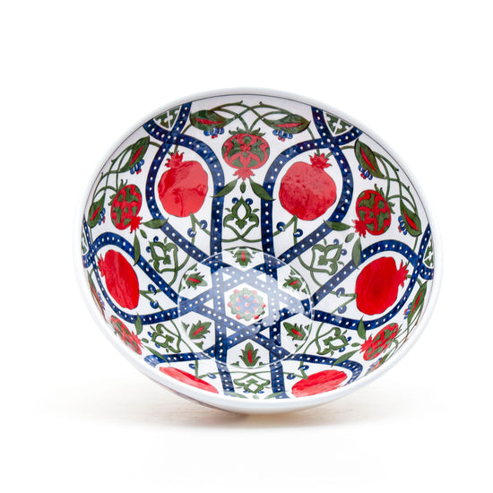 Geleneksel İznik çini sanatının zarif örneklerinden biri olan bu el yapımı çini kase, bereketin simgesi nar motifleriyle süslenerek hem dekoratif hem de işlevsel bir obje haline getirilmiştir.