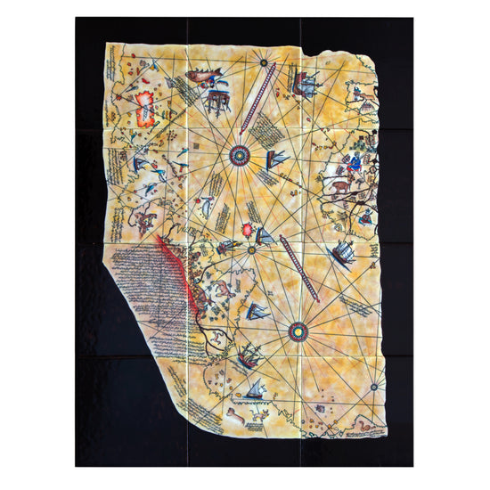 Bu pano, Osmanlı denizcisi ve kartografı Pîrî Reis’in 1513 yılında çizdiği ünlü haritanın çiniye aktarılmış bir yorumudur. Harita, Avrupa ve Afrika'nın batı kıyılarını, Güney Amerika'nın doğu kıyılarını ve okyanus üzerindeki navigasyon unsurlarını içerir. İznik çini sanatıyla yorumlanan bu tarihi belge, estetik olduğu kadar bilgi değeriyle de dikkat çeker. Her bir İznik çinisi, usta zanaatkarlar tarafından tamamen el işçiliğiyle üretilmiştir.