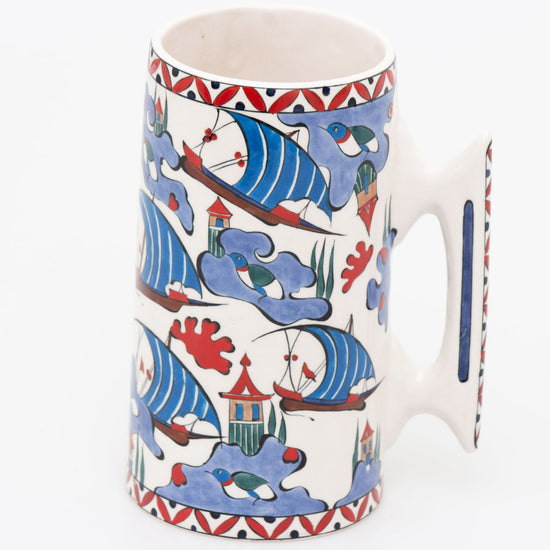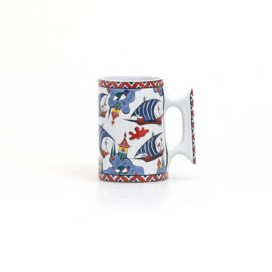 Selimiye Kalyonu, Osmanlı deniz gücünün en etkileyici gemilerinden biridir. Bu İznik çini kupa, tarihi denizcilik kültürünü yaşatırken, el işçiliğiyle üretilmiş çini sanatının zarafetini sunuyor. Sıcak ve soğuk içecekler için uygun olan çini kupa, zarif tasarımıyla hem günlük kullanım hem de özel sunumlar için ideal bir tercihtir. Bu kompozisyon tasarımı Serap Ereyli ve İznik Mavi Çini'ye aittir.