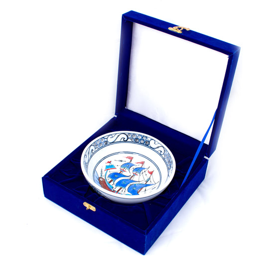 Yavuz Kalyonu’nun kudretli duruşu, İznik çini sanatının incelikleriyle işlenmiş bu özel kasede hayat buluyor. Osmanlı çini geleneğinin detaylarıyla süslenen bu eser, sanatı ve tarihi bir araya getiriyor. Her bir İznik çinisi, usta zanaatkârlar tarafından tamamen el işçiliğiyle üretilmiştir. Desen tasarımı Serap Ereyli ve İznik Mavi Çini'ye aittir.